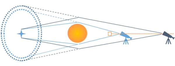 - 因此,我们可以将太阳作为一个透镜天体,放大太阳背后来自遥远天体的信号。