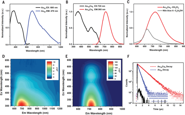 Au22和Au16Cu6在二氯甲烷中的发光性质