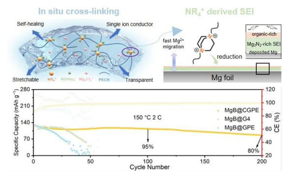 - 原位交联聚合物电解质及其衍生的负极界面实现高温镁金属电池的稳定循环